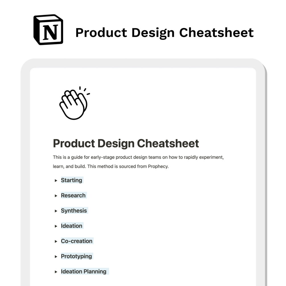 This is a guide for early-stage product design teams on how to rapidly experiment, learn, and build. This method is sourced from Prophecy.